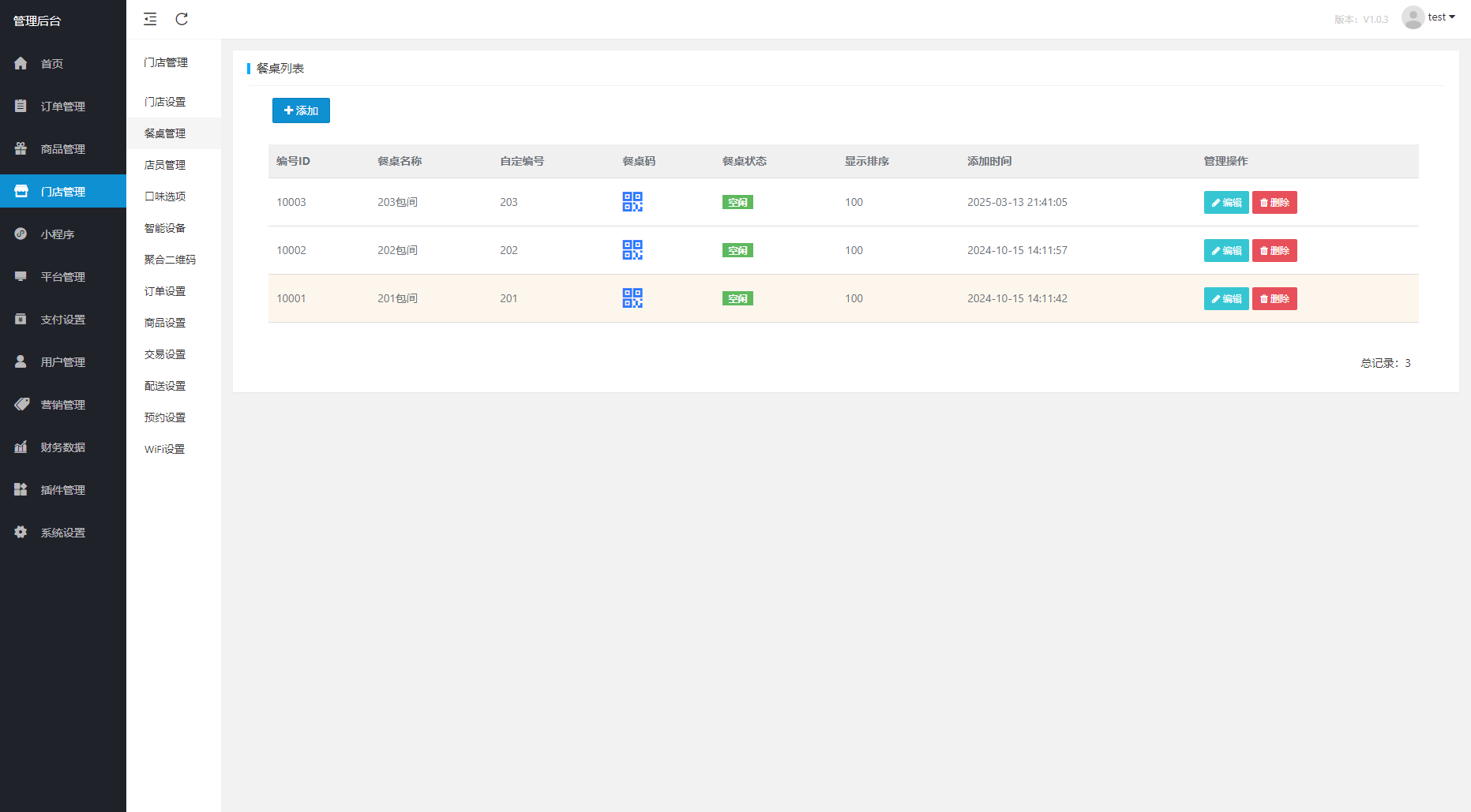 8.门店管理:餐桌,店员,口味,云设备,二维码,wifi,预约订桌等管理。