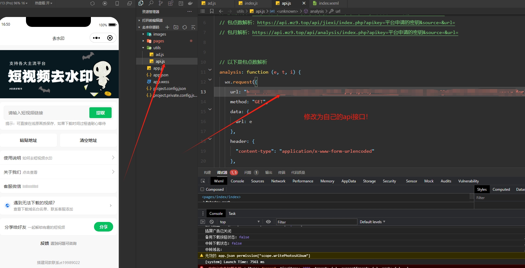 本源码无任何加密 替换去水印接口即可使用 或者有能力的可对接自己的接口