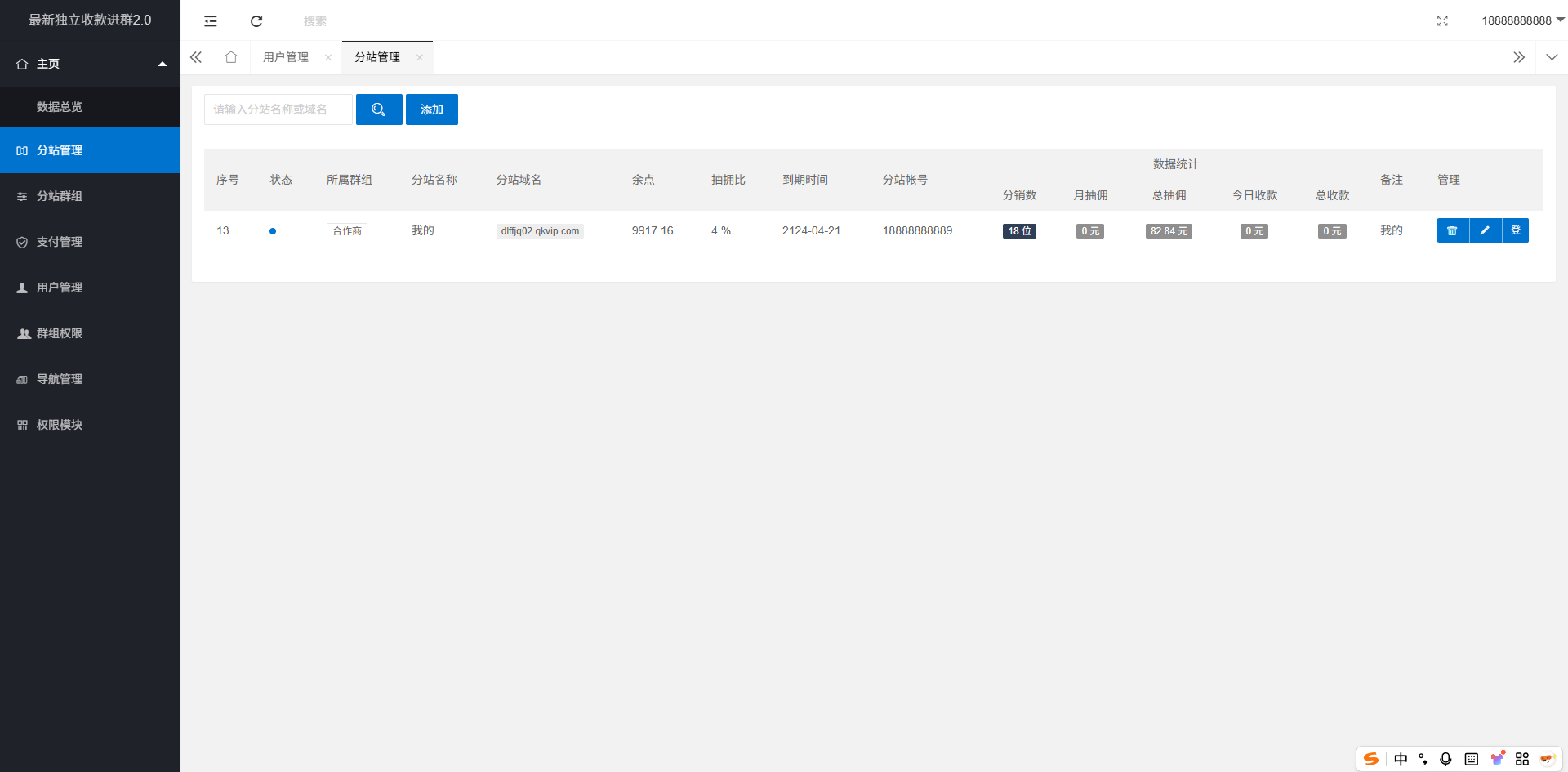 分站分销裂变系统,支持多级分站开通,自定义分站佣金比例,分站独立管理后台,实时查看订单与收益数据